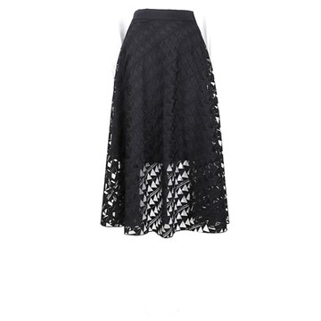 KARL LAGERFELD 卡爾 老佛爺 幾何刺繡網紗黑色中長裙