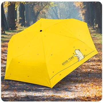 雙龍呆呆熊超輕迷你口袋傘降溫抗UV黑膠五折傘晴雨傘(酷炫黃)