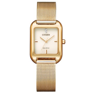 CITIZEN星辰 優雅方形米蘭帶光動能腕錶EM0493-85P