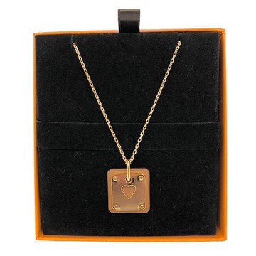 HERMES 經典愛心皮革雙面項鍊(金棕色)