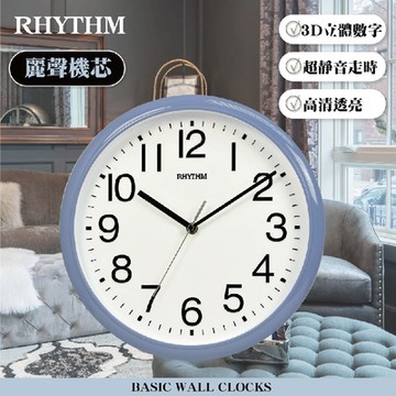RHYTHM日本麗聲 經典百搭生活家居12吋超靜音壁掛鐘(淡藍色)/30cm