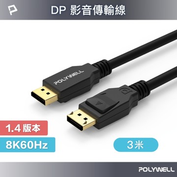 POLYWELL 寶利威爾 DP 1.2傳輸線 DisplayPort 公對公 2m PW12-W46-D020 1條