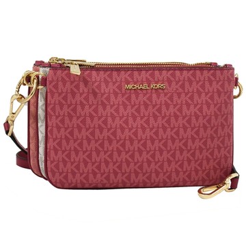 MICHAEL KORS JET SET ITEM 印花三合一拉鍊斜背包.莓紅