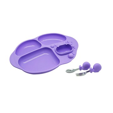 【MARCUS&MARCUS】動物樂園造型吸力分隔餐盤-鯨魚(紫)