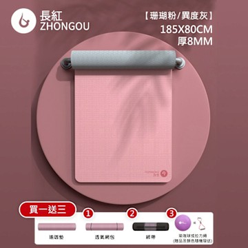 ZHONGOU 長紅 TPE加厚款正位線防滑雙色瑜珈墊 TP88N 贈綁帶+背袋+拉力繩或拍拍球(顏色款式隨機) 粉色 185 x 80cm 1組