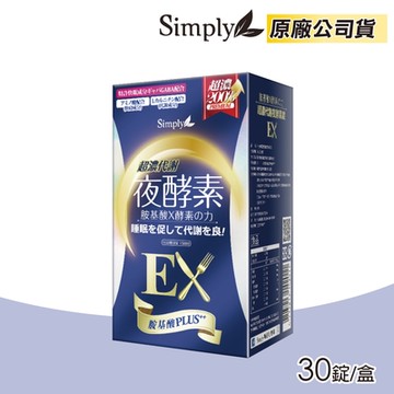 新普利 Simply 超濃代謝夜酵素錠EX 30錠/盒 (胺基酸PLUS+ 植物五辛素 原廠公司貨)