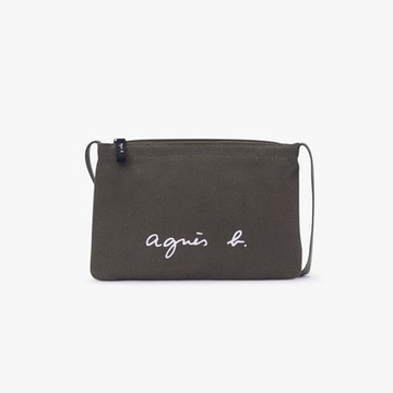 agnes b.Voyage 草寫logo尼龍斜背包(黑色)