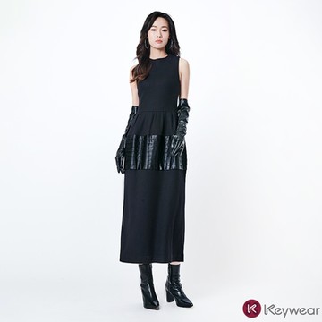 KeyWear奇威名品 質感羊毛無袖收腰洋裝-黑色
