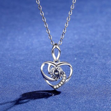 [米蘭精品] 莫桑鑽項鍊925純銀吊墜-1ct鏤空愛心浪漫聖誕節情人節生日禮物女飾品2色73yk24