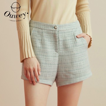 OUWEY歐薇 活力質感花呢珍珠釦短褲(淺藍)3213076012