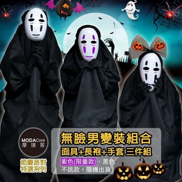 摩達客★萬聖節派對★無臉男變裝組合(面具+長袍+手套三件組) 紫色or黑色不挑款色隨機出貨_Cosplay化妝舞會