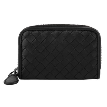 BOTTEGA VENETA 寶緹嘉 經典羊皮編織拉鍊零錢包(黑)