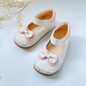 DONGCHICHI 素素的就很可愛 蝴蝶結 方頭 娃娃鞋 米白色 F010