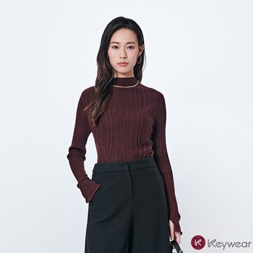 KeyWear奇威名品 簡約立領針織長袖針織毛衣-暗紅色