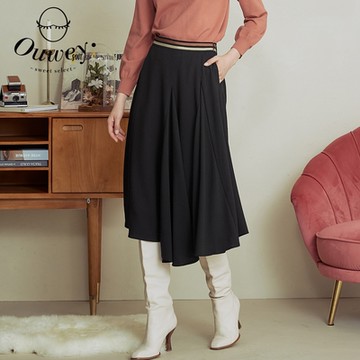 OUWEY歐薇 時尚織帶造型不規則A字裙(黑)3214082207