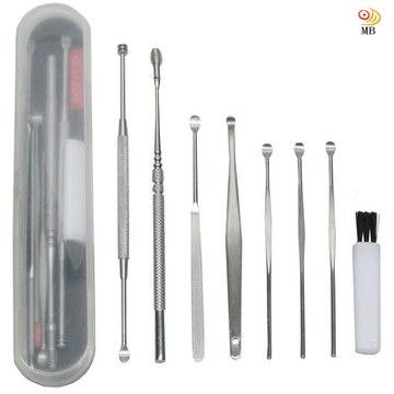 月陽8件式不銹鋼彈力螺旋安全耳勺耳扒棒組(E89S)