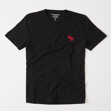 A&F 麋鹿 熱銷刺繡大麋鹿圓領素色短袖T恤-紅色