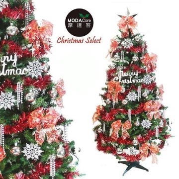 摩達客台灣製8尺(240cm)豪華型裝飾綠色聖誕樹/全套飾品組(兩色可選)+100燈LED小圓球珍珠燈串(暖白光/USB接頭)*2串/本島免運費