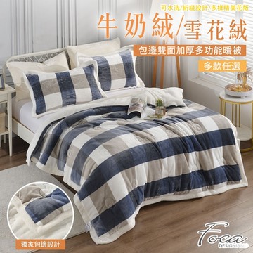 FOCA 簡約牛奶絨X羊羔絨包邊雙面加厚多功能暖被-大尺寸180X210CM(多款任選)