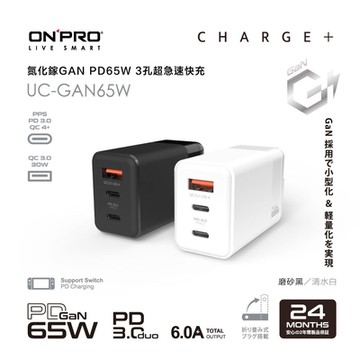 2年保固 ONPRO UC-GAN65W 氮化鎵GaN 65W 3孔PD快充充電器