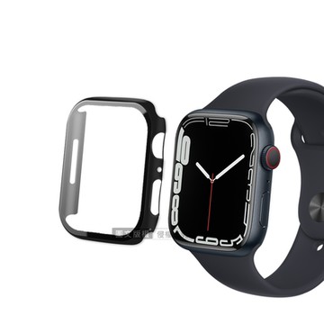 全包覆經典系列 Apple Watch Series 9/8/7 41mm 9H鋼化玻璃貼+錶殼 一體式保護殼(黑色)