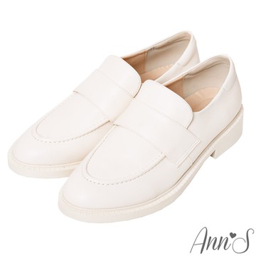 MAGY 個性馬銜釦牛貼皮中跟樂福鞋 米白 #15782