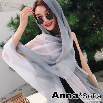 AnnaSofia 霓彩漸層 仿蠶絲大尺寸披肩絲巾圍巾(深淺灰系)