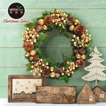 摩達客耶誕-台灣製歐風典雅14吋大地盛宴金球果松果聖誕花圈_福臨圈(免組裝/台灣設計手工藝製)本島免運費