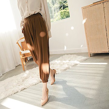慵懶舒適風 鬆緊超手感寬筒褲-【161-7571】