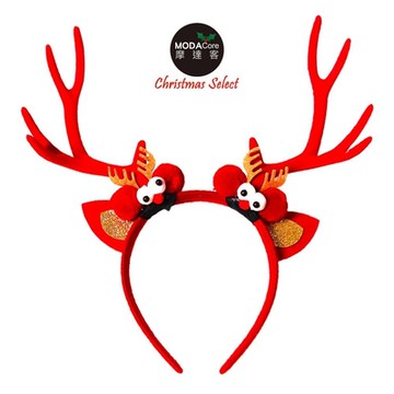 摩達客耶誕 亮片鹿角聖誕葉髮箍(紅色)