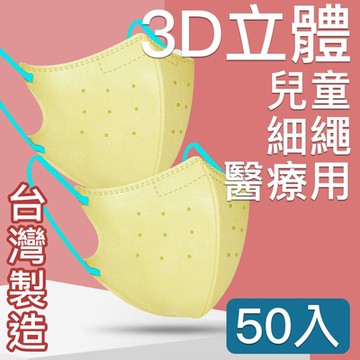 MIT台灣嚴選製造 細繩 3D立體醫療用防護口罩 -兒童款 50入/盒 不挑色