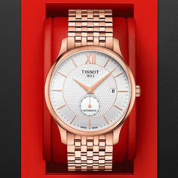 TISSOT 天梭 官方授權 Tradition 小秒針機械錶 新春開運 送禮首選-銀x玫塊金/40mm T0634283303800