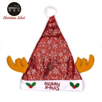 摩達客耶誕派對-紅亮片鹿角尖帽髮箍