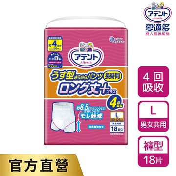 日本大王Attento 愛適多防漏加長平口褲L 4回吸收 (18片/包)