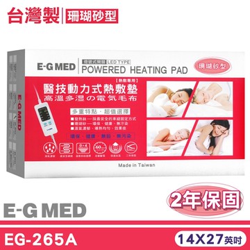 【E-GMED 醫技】 動力式熱敷墊/電熱毯-珊瑚砂型(EG-265A 14X27吋/40X73cm-背部與腰部適用)