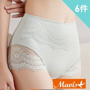 Mavis瑪薇絲-輕塑精梳棉蕾絲高腰內褲(6件)