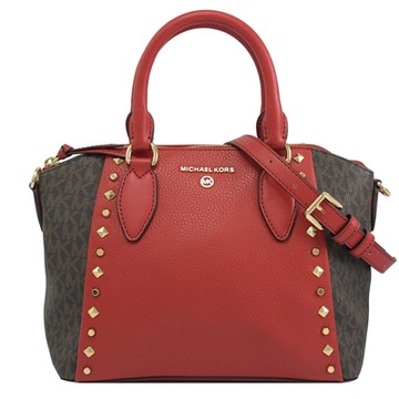 MICHAEL KORS SIENNA 經典MK印花拼接手提兩用包.深咖/紅