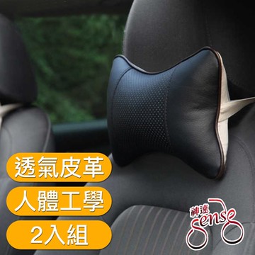 Sense神速 人體工學透氣皮革車用座椅護頸頭枕(2入組)