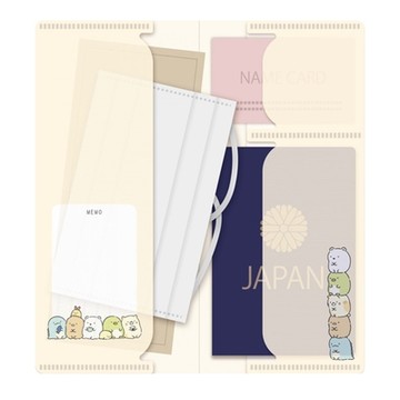 日本製BEVERLY角落生物多功能收納套子CF-101口罩收納夾(3夾層/亦適悠遊卡片護照鈔票/可鉛筆書寫記事)角落小夥伴牆角生物口罩收納袋子-日本原裝進口