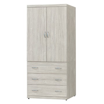 Boden-沃尼2.7尺二門三抽衣櫃-灰橡色-80x55x200cm