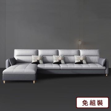 ASSARI-亨利輕柔貓抓布L型沙發(四人座+腳椅)