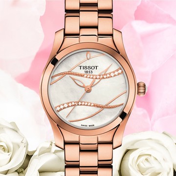 TISSOT天梭 官方授權 T-WAVE優雅真鑽玫瑰金腕錶 新年禮物 推薦 送禮 30mm/T1122103311100
