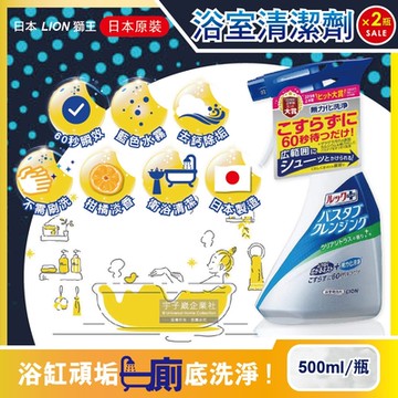 (2瓶超值組)日本LION獅王-LOOK PLUS衛浴馬桶浴缸去鈣除垢消臭浴室清潔劑(柑橘香)500ml/瓶
