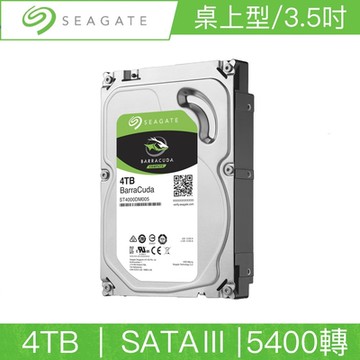 希捷Seagate 新梭魚BarraCuda 4TB 3.5吋 SATAIII 5400轉桌上型硬碟(ST4000DM004)