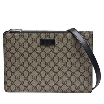 GUCCI 古馳 經典Supreme帆布皮革飾邊手拿/斜背信差包(烏木色)