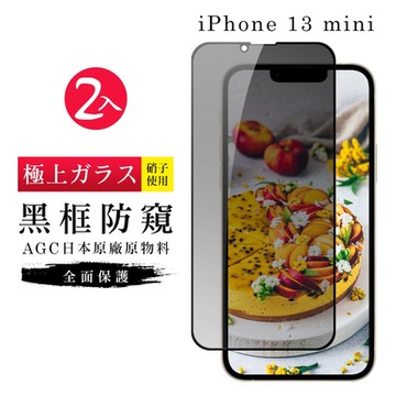 IPhone 13 MINI AGC日本原料黑框防窺疏油疏水鋼化膜保護貼(2入-13MINI保護貼13MINI鋼化膜)