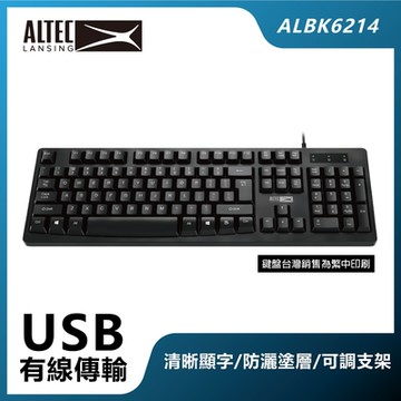 ALTEC LANSING 簡約美學有線鍵盤 104按鍵 USB充電 可調式支架 黑色 ALBK6214 製造商軸