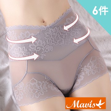 Mavis瑪薇絲-法式蕾絲雙層收腹內褲/高腰內褲(6件)