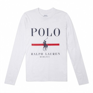 Polo Ralph Lauren RL 熱銷印刷文字圖案長袖T恤-白色