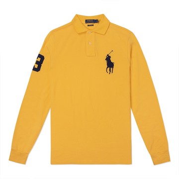 Polo Ralph Lauren RL 熱銷刺繡大馬長袖POLO衫(CUSTOM SLIM FIT)-黃色